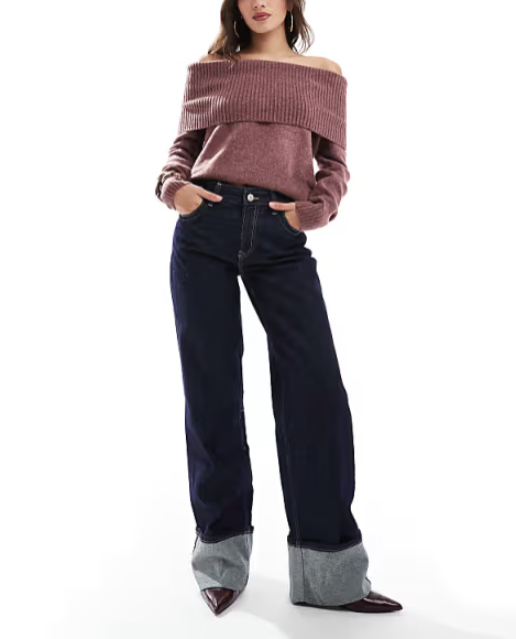Dámske tmavomodré rifle rovného strihu so širokými manžetami sú efektným modelom, ktorý zaujme na prvý pohľad. Rifle majú vysoký pás a prešívaný dizajn .